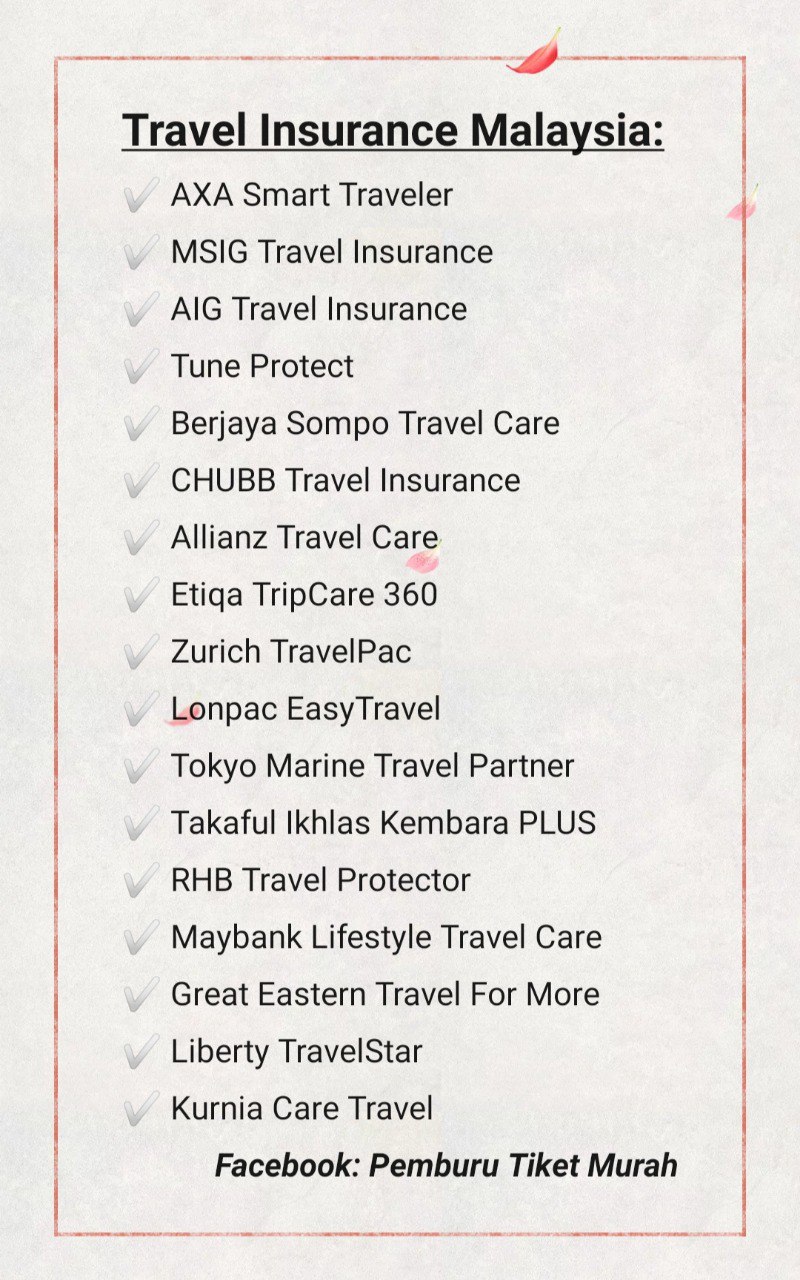 Pemburu Tiket Murah On Twitter Senarai Travel Insurans Yang Boleh Anda Beli Secara Online Atau Melalui Ejen Https T Co Qcoqksb9xk Twitter
